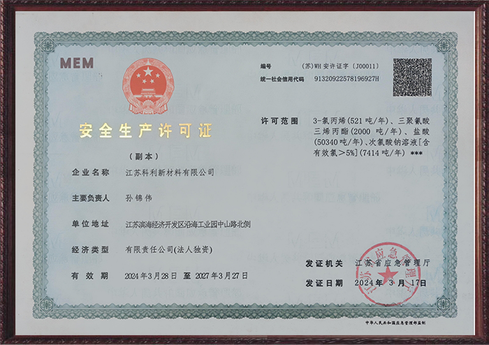 Jiangsu Keli safe production license